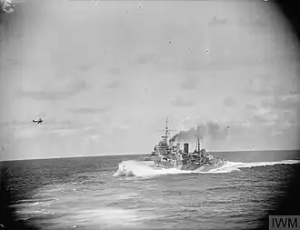 В сентябре крейсер совместно с авианосцем Hermes и крейсерами Enterprise и Hawkins выходил на перехват вишистского конвоя, следовавшего из Сайгона на Мадагаскар. В поисках конвоя также участвовали 2 летающие лодки PBY Catalina из состава RAF, после пропажи одной из них операция была прекращена.
