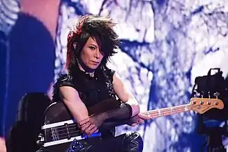 ![]() Хит выступает с X Japan в Сан-Паулу в 2011 году | |