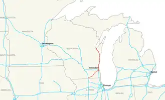 Южный конец автомагистрали Interstate 43 располагается в городе Белойт, на пересечении WIS 81 с I-39 и I-90. I-43 направляется на северо-восток. В городе Милуоки Interstate 43 пересекает I-94, а также две вспомогательные магистрали — I-794 и I-894, и поворачивает на север, двигаясь вдоль берега озера Мичиган. Затем Interstate 43 проходит через город Шебойган. Магистраль заканчивается в городе Грин Бей, на пересечении с US 41 и US 141.