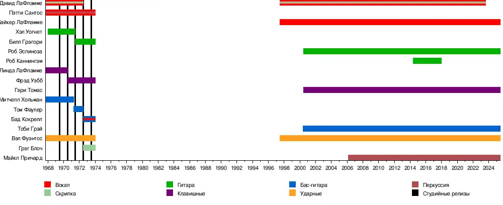 - Линда ЛаФламме – клавишные (1967–1969; умерла в 2024)