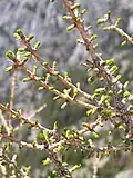 Почки густо опушённые, с ресничатыми чешуями. Хвоя длиной 25—35 (до 50) мм, в сечении ромбическая, голубовато-зелёная, жёсткая.