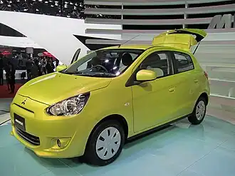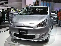 Mitsubishi Mirage — субкомпактный автомобиль, выпускавшийся компанией Mitsubishi Motors с 1978 по 2002 год[5], а также возродилось производство с 2012 года. Mitsubishi Mirage в кузовах хетчбэк, выпущенные между 1987 и 2002 годами классифицировались как малолитражные автомобили, в то время как кузов седан и универсал наряду с Mitsubishi Lancer входил в компактный класс. Кузов хетчбэк был представлен в 1988 году и дополнил уже существующий кузов седан в виде рестайлинга. Кузов купе появился на свет в 1991 году и также входил в субкомпактный класс. Модель малолитражки Mitsubishi Mirage полностью заменила Mitsubishi Colt и продавалась в период с 2002 по 2012 год.