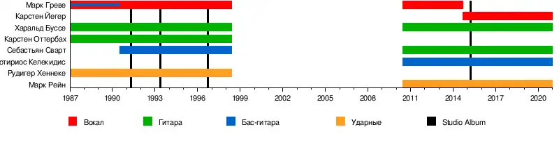 - Марк Греве — вокал (1985–1998, 2010–2014), бас-гитара (1985–1990)