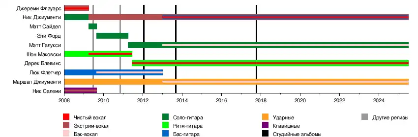 - Маршал Джиументи – ударные (2008—настоящее время), бэк-вокал (2013—настоящее время)