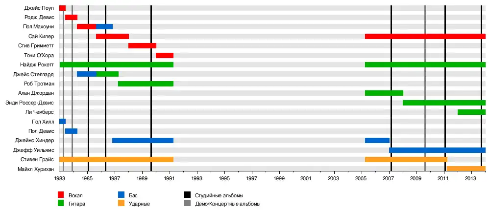 - Стивен Грайс – Ударные (1982–1991, 2005–2011)