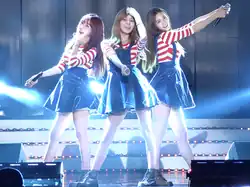 ![]() Orange Caramel в августе 2015 года. Слева направо: Нана, Рэйна и Лиззи | |