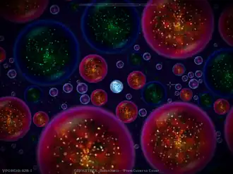 Основой геймплея игры является поглощение других организмов собственным. Организмы представлены в игре в виде сфер различного размера. Поглощение осуществляется путём столкновения сферы игрока с меньшими сферами. Столкновение с бо́льшими организмами ведёт к поглощению части сферы игрока, а впоследствии — к поражению. Перемещение игрока осуществляется по принципу реактивного движения, путём выброса собственной массы в сторону, противоположную желаемому направлению движения. Таким образом, перемещение влечёт за собой потерю массы и уменьшение сферы игрока. Также игрок имеет возможность ускорять или замедлять время в игре.