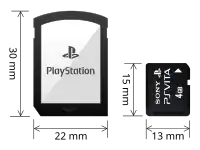 Игры для PlayStation Vita распространяются на флэш-картах нового проприетарного формата PlayStation Vita card, которые заменили UMD[14]. Кроме этого, консоль имеет разъем для новых карт памяти, которые пришли на смену Memory Stick PRO DUO и выпускаются вместимостью до 64 ГБ. На старте в Европе были доступны карты от 4 до 16 ГБ. 5-10 % свободного места зарезервировано для сохранений и патчей. Используя флеш-накопитель, Sony планирует ввести в использование карточки большей ёмкости[15]. Также PSN аккаунт пользователя связан с картой памяти, но не с консолью[16].
