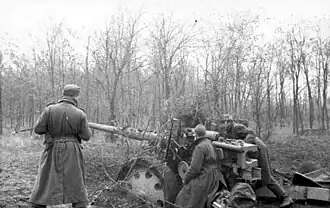 - ↑ Из политических и психологических соображений в 1940 году противотанковые подразделения переименовали в подразделения «истребителей танков»: при реорганизации Panzerabwehrabteilung (противотанковый дивизион) были переименованы в Panzerjägerabteilung (дивизион истребителей танков). В связи с этим в 1941 пушки также переименовали в Panzerjägerkanone (пушка истребителей танков), с сохранением сокращения Pak.