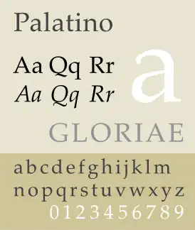 Palatino — большое семейство шрифтов, основанных на рисунках (почерках) итальянских мастеров периода ренессанса. Своеобразная форма букв отражает каллиграфическую природу их появления — буквы рисовались с помощью пера. Шрифты названы в честь итальянского каллиграфа 16 века Джамбатисты Палатино (Giambattista Palatino).