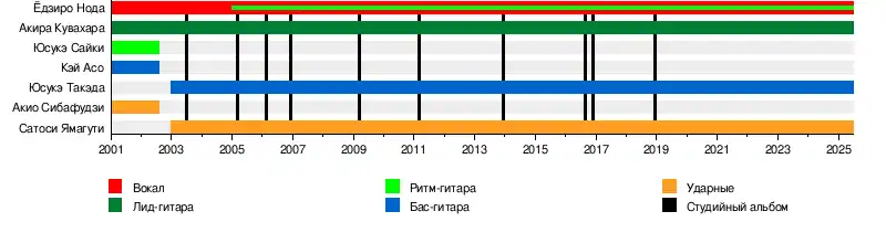 - Акира Кувахара (яп. 桑原彰) — лид-гитара, бэк-вокал (2001 — наст. вр.)