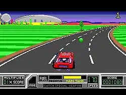 На трассах могут встречаться различные опасности: встречные машины, мины, токсичные лужи и другие; о приближении некоторых из них сообщается на приборной панели в нижней части экрана. Помимо этого, на панели показаны количество набранных очков, скорость, наличие топлива и оружия. Некоторые из опасностей можно уничтожать с помощью оружия. Если игрок врезается в такое препятствие или в него попадает снаряд от них, автомобиль взрывается, после чего восстанавливается и вновь продолжает движение. Периодически над игроком будет пролетать самолёт, который сбрасывает более мощное оружие (например, более скорострельное или уничтожающее все опасные объекты в поле зрения) или турбоускоритель[3]. У автомобиля игрока ограничен запас топлива; его можно пополнять, собирая зелёные и красные (даётся больше топлива, по сравнению с зелёными) сферы. Эти сферы могут находиться на дороге или же появляться из уничтоженных встречных машин и мотоциклов. Топливо также пополняется при получении очков после каждого пройденного уровня, а также после прохождения контрольных точек на дороге. Если топливо закончится до пересечения контрольной точки или финишной черты, теряется жизнь. Если будут потеряны все жизни, игра начинается заново[3].