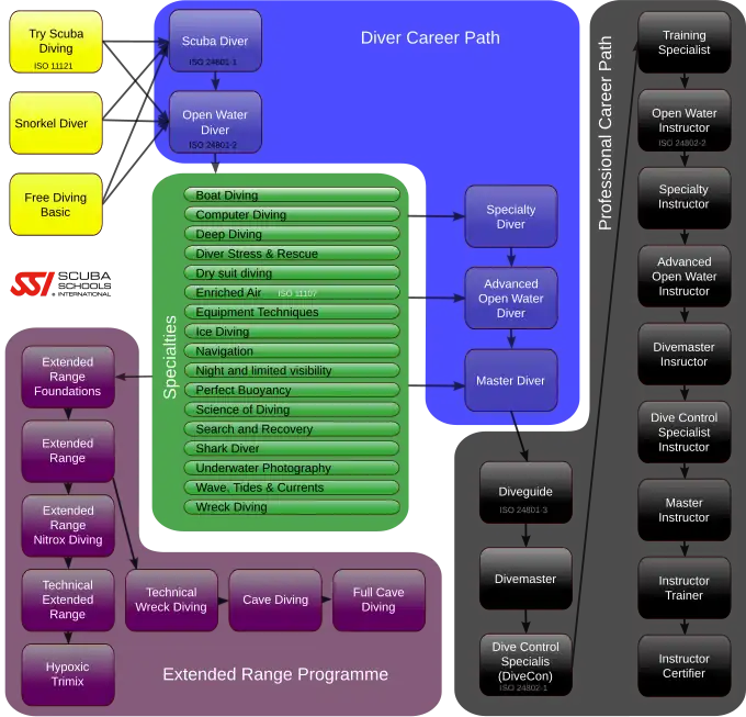 - ↑ Learning to dive — which agency is best? — DIVE Magazine. Дата обращения: 13 февраля 2023. Архивировано 13 февраля 2023 года.