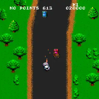 - Зелёный автомобиль — как и автомобиль игрока вооружен двумя пулеметами в бампере. Появляется на высших уровнях трассы.