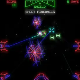 Игрок выполняет роль Люка Скайуокера («Красный пять»), управляющего истребителем X-wing с видом от первого лица. В отличие от других похожих аркадных игр, игрок не должен уничтожить всех врагов, чтобы пройти игру; достаточно просто выжить. Истребитель игрока летит через уровень, а игрок должен избегать или уничтожать снаряды, которыми стреляет в него противник. Каждое попадание в его корабль убирает один щит (из 6 с которыми он начинает), и если у игрока кончаются щиты, следующее попадание уничтожает его корабль.