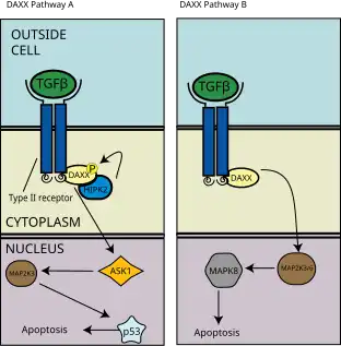 Активированный белок р53 является специфическим транскрипционным фактором. Гены, транскрипцию которых стимулирует белок р53, кодируют белки-компоненты апоптотической программы (проапоптотические компоненты) и белки, которые регулируют клеточный цикл.