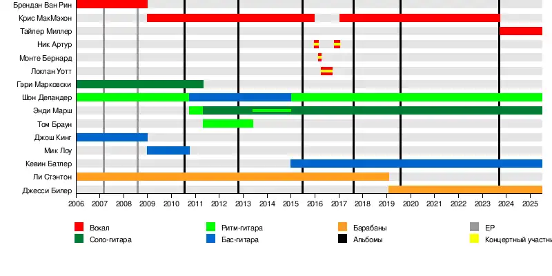 - Тайлер Миллер — вокал (2023-настоящее время)