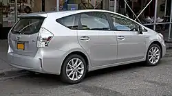 Универсал Prius α с увеличенной колёсной базой был представлен в Японии в мае 2011 года. В нём могли комфортно разместиться пятеро взрослых и багаж объёмом до 552 литров. Имелся также семиместный вариант автомобиля с тремя рядами сидений и багажником объёмом 200 литров. Для размещения дополнительного ряда сидений стандартную батарею заменили на более компактную литий-ионную, которую переместили из багажника в нишу между передними сиденьями[43]. Этот же автомобиль под названием Prius v (versatile — универсальный) в конце года поступил в продажу в Северной Америке[44], а летом 2012 — года в Европе, под именем Prius +[45].