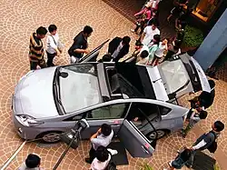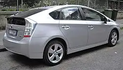 Toyota Prius (Тойота Приус) третьего поколения — гибридный легковой автомобиль, выпускавшийся японской фирмой Toyota с 2009 по 2015 годы. Латинское слово prius (яп. プリウス) в названии модели трактуется как первый, изначальный[5]. За свою экологичность и оригинальность конструкции получил множество призов и наград, в том числе признавался автомобилем года в Японии[6].
