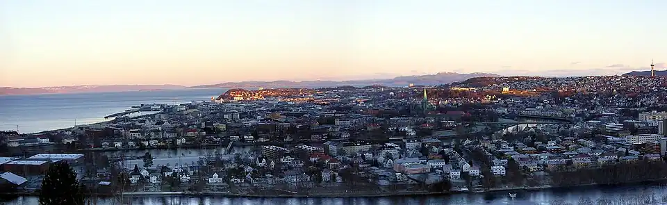 Тро́нхейм (норв. о файле, также Trondhjem; юж.-саамск. Råante, историческое название Ни́дарос норв. Nidaros) — третий по населению город Норвегии, расположен в устье реки Нидельвы на берегу Тронхеймского фьорда. Крупнейший город фюльке Трёнделаг. Плотность населения: 480 жителей на 1 км².