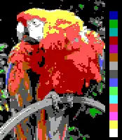 - 320×200, 4 цвета из встроенной 16-цветной палитры. Соотношения пикселей — 1:1.2.