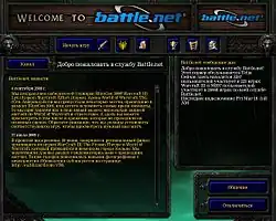 Для входа в систему игроку нужно нажать кнопку «Battle.net» в главном меню игры. Игра сама выбирает сервер, однако при желании можно выбрать любой из четырёх серверов, нажав кнопку с изображением лупы. После успешного соединения игроку показывается экран приветствия в виде стилизованных ворот с замком в виде головы льва, и становится возможным авторизоваться или зарегистрироваться. После авторизации игрок попадает на главную страницу, с которой он может начать играть. Сверху на ней присутствует панель с кнопками, с помощью которых игрок может начать играть либо посмотреть свой профиль, перейти во встроенный чат или на веб-страницы турниров и рейтингов. Также на главной странице присутствуют новости и статистика по текущему количеству игроков и игр в системе.