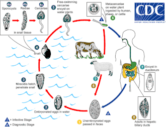 - проникновение и инцистирование в промежуточном хозяине (стадия метацеркарии), при этом промежуточный хозяин служит пищей для окончательного хозяина или следующего промежуточного хозяина (встраивание в трофическую цепь);