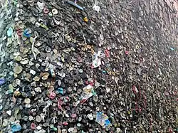- Для безвредной утилизации жевательной резинкой придумывают весьма необычные способы: так, в городе Сан-Луис-Обиспо (Калифорния) уже сорок лет стоит стена, на которую каждый желающий может прилепить свою жевательную резинку, это местная достопримечательность; стена залеплена резинкой в несколько слоёв. В немецком Бохольте для этих же целей используются стволы деревьев[1].