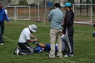 Спортивная травма — это повреждение, сопровождающееся изменением анатомических структур и функции травмированного органа в результате воздействия физического фактора, превышающего физиологическую прочность ткани, в процессе занятий физическими упражнениями и спортом[5].