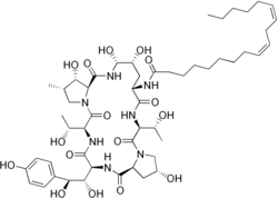 - ↑ 1 2 3 Sucher A. J., Chahine E. B., Balcer H. E. Echinocandins: the newest class of antifungals. (англ.) // The Annals of pharmacotherapy. — 2009. — Vol. 43, no. 10. — P. 1647—1657. — doi:10.1345/aph.1M237. — PMID 19724014.